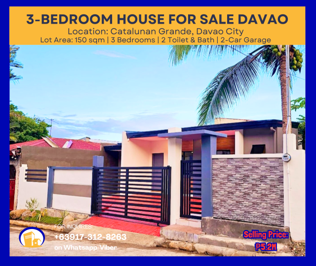 3-Bedroom House for Sale in Catalunan Grande, Davao City