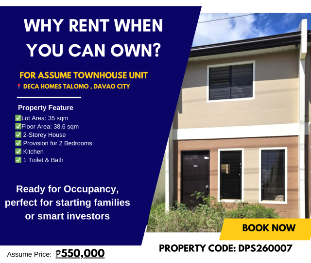 FOR ASSUME – Townhouse Unit in Deca Homes Talomo, Puan, Davao City!