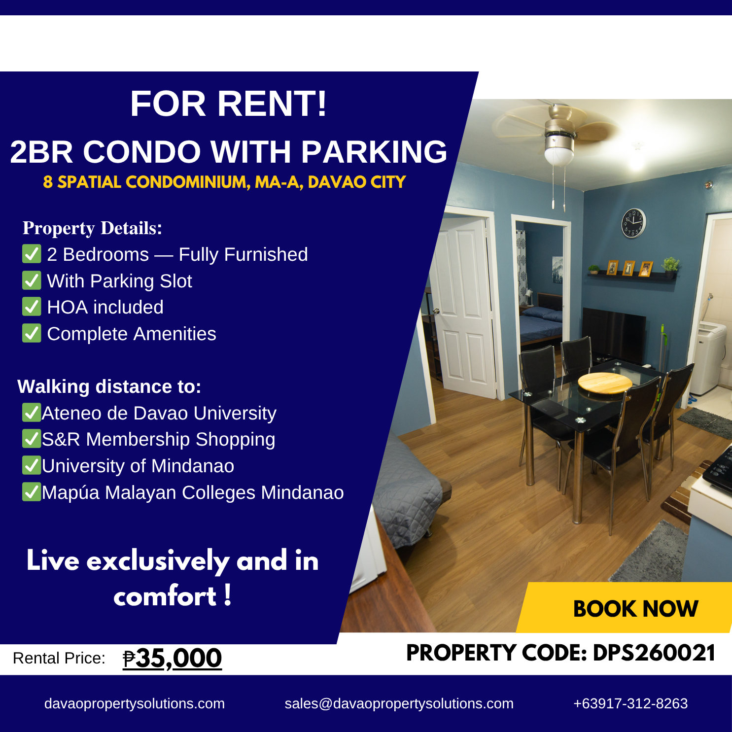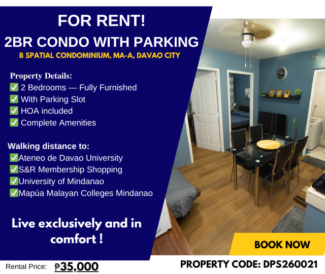 For Rent: 2BR Condo with Parking – 8 Spatial, Ma-a, Davao City